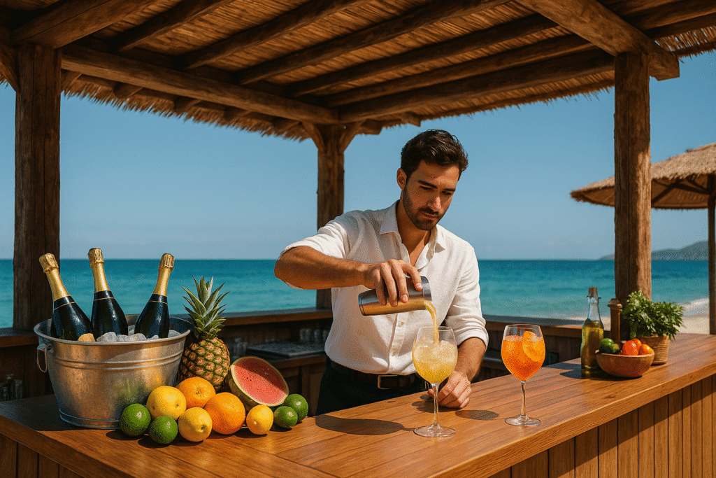 “Saboreie coquetéis refrescantes e pratos leves, preparados especialmente para acompanhar seus momentos à beira-mar.”