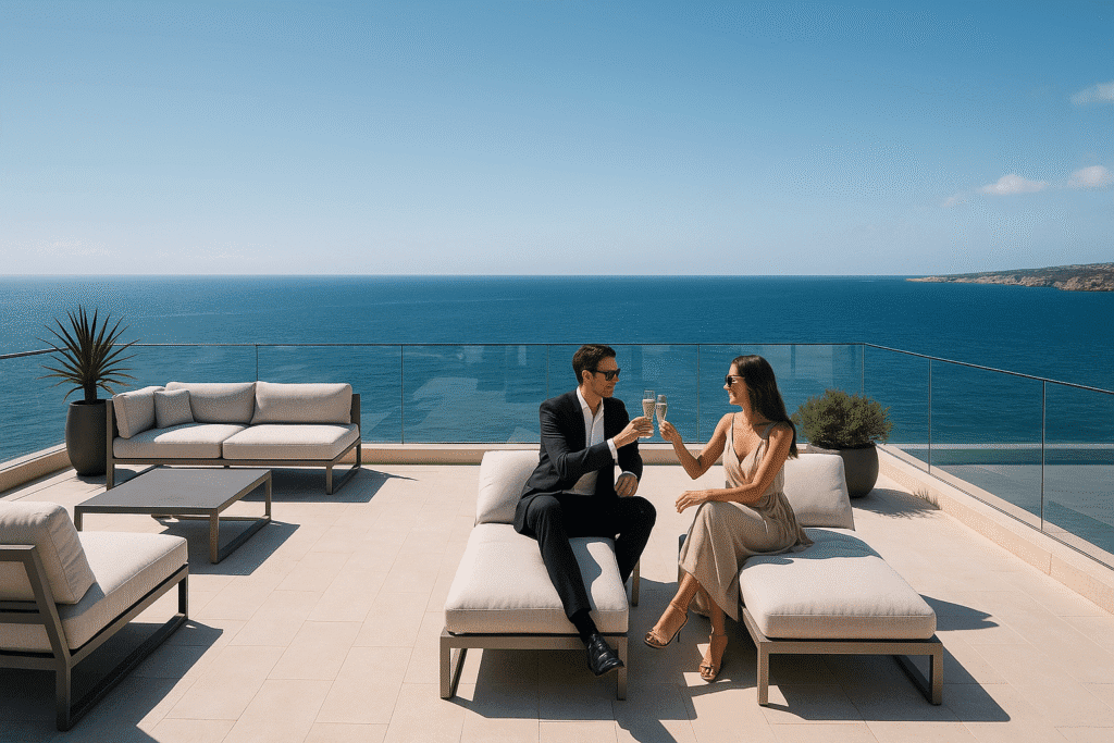 Com vistas panorâmicas, mobiliário de design e a exclusividade de viver Mallorca do topo da sua suíte.